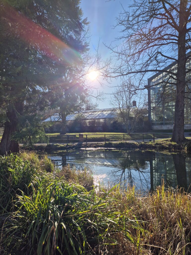 Nach unserem ersten Rundgang hatten wir noch nicht mal alles gesehen, was der Botanische Garten zu bieten hat. Wir entschieden uns aber eine Bank am Teich anzuvisieren, um dort die verbleibende Zeit bis zur Schließung zu genießen.