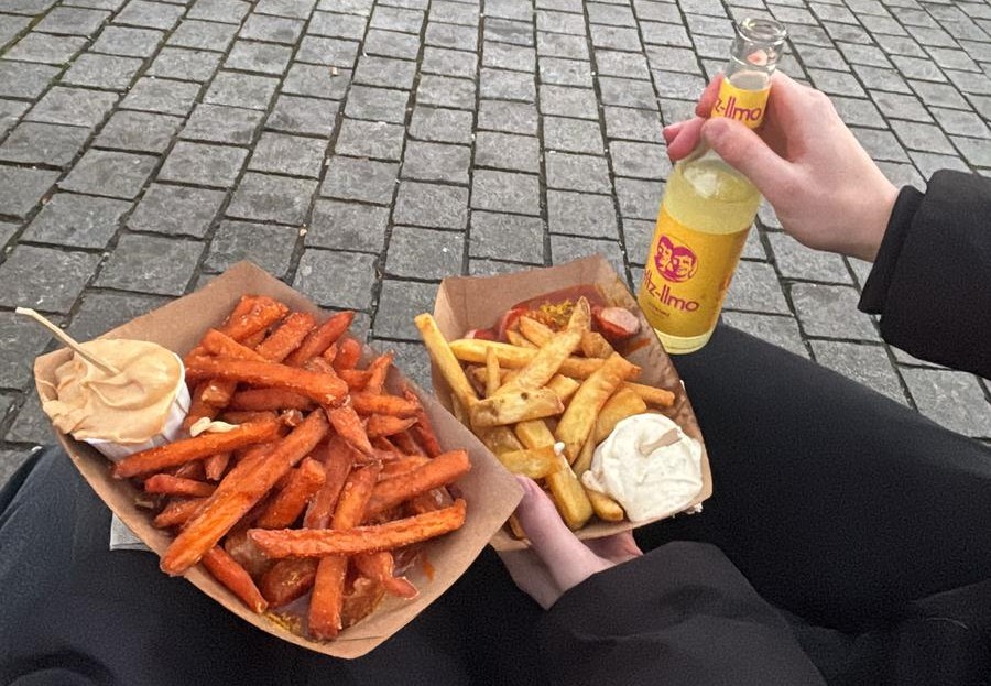 Unser Ziel war jedoch das Fast-Food-Restaurant Fritz Mitte, obwohl Fast-Food-Häuschen es eher trifft. Davon darf man sich aber nicht abschrecken lassen. Die regulären Pommes sowie die Süßkartoffelpommes waren extrem gut. Knusprig und nicht zu fettig trifft es am besten und das alles in passender Größe zum angenehmen Preis. Die vegane Currywurst meiner Freundin war ebenfalls mehr als passabel und an meiner „originalen“ Currywurst hatte ich auch nichts auszusetzen. Als Dip können wir ohne Gewissensbisse Curry-Mango und Honig-Limone-Dijonsenf empfehlen. Zusammen mit meiner Fritz-Zitrone, die im Menü enthalten war, kostete uns das entspannte Abendessen 18€.